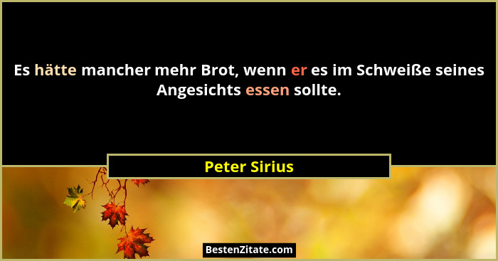 Es hätte mancher mehr Brot, wenn er es im Schweiße seines Angesichts essen sollte.