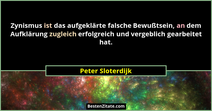 Zynismus ist das aufgeklärte falsche Bewußtsein, an dem Aufklärung zugleich erfolgreich und vergeblich gearbeitet hat.