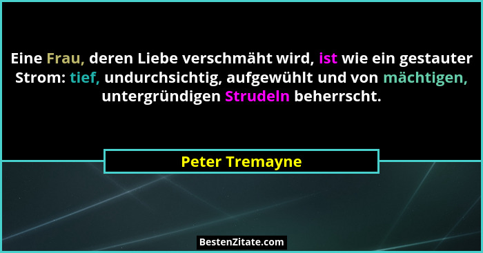Eine Frau, deren Liebe verschmäht wird, ist wie ein gestauter Strom: tief, undurchsichtig, aufgewühlt und von mächtigen, untergründigen Strudeln beherrscht.