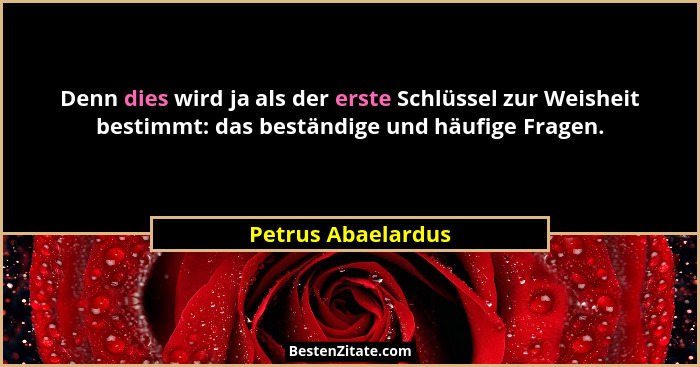 Denn dies wird ja als der erste Schlüssel zur Weisheit bestimmt: das beständige und häufige Fragen.