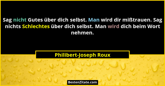 Sag nicht Gutes über dich selbst. Man wird dir mißtrauen. Sag nichts Schlechtes über dich selbst. Man wird dich beim Wort nehmen.
