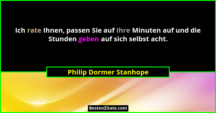 Ich rate Ihnen, passen Sie auf Ihre Minuten auf und die Stunden geben auf sich selbst acht.