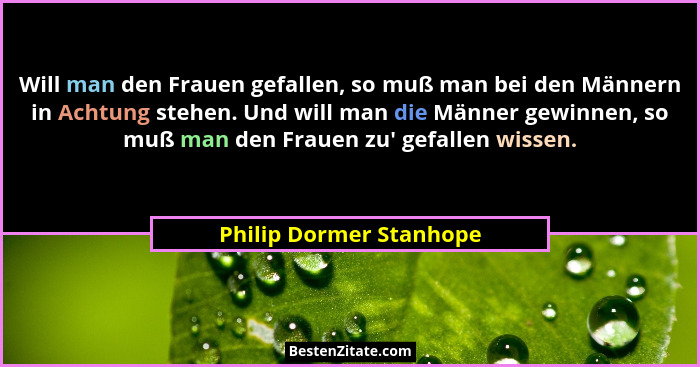 Will man den Frauen gefallen, so muß man bei den Männern in Achtung stehen. Und will man die Männer gewinnen, so muß man den Frauen zu' gefallen wissen.