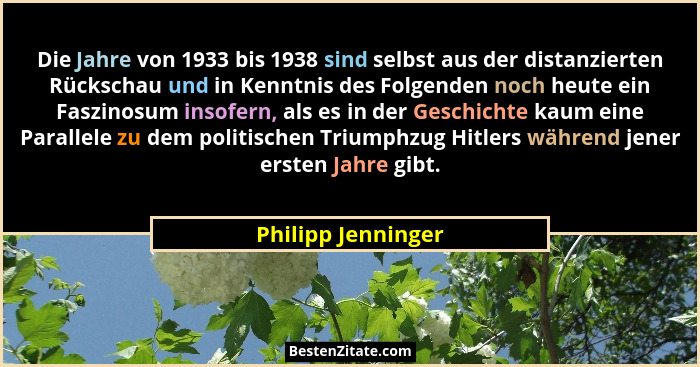 Die Jahre von 1933 bis 1938 sind selbst aus der distanzierten Rückschau und in Kenntnis des Folgenden noch heute ein Faszinosum insofern, als es in der Geschichte kaum eine Parallele zu dem politischen Triumphzug Hitlers während jener ersten Jahre gibt.