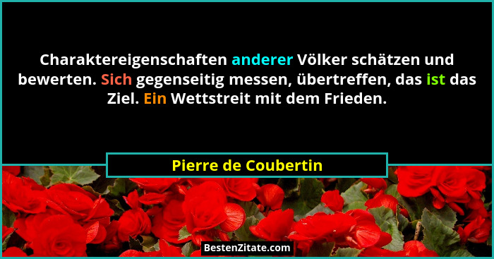 Charaktereigenschaften anderer Völker schätzen und bewerten. Sich gegenseitig messen, übertreffen, das ist das Ziel. Ein Wettstreit mit dem Frieden.