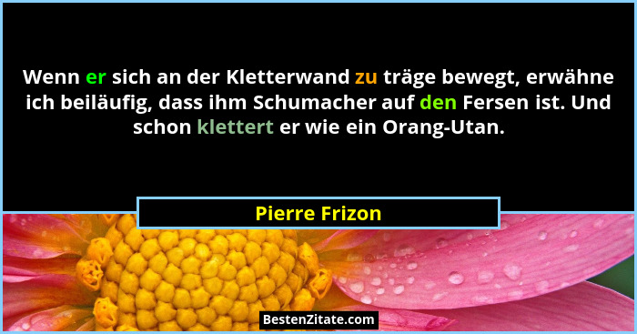 Wenn er sich an der Kletterwand zu träge bewegt, erwähne ich beiläufig, dass ihm Schumacher auf den Fersen ist. Und schon klettert er wie ein Orang-Utan.