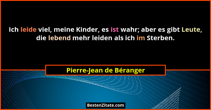 Ich leide viel, meine Kinder, es ist wahr; aber es gibt Leute, die lebend mehr leiden als ich im Sterben.