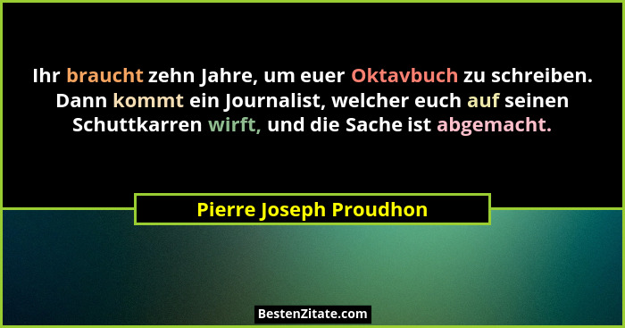 Ihr braucht zehn Jahre, um euer Oktavbuch zu schreiben. Dann kommt ein Journalist, welcher euch auf seinen Schuttkarren wirft, und die Sache ist abgemacht.