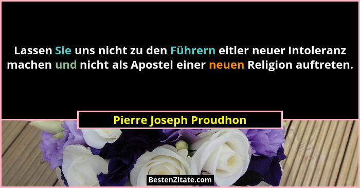 Lassen Sie uns nicht zu den Führern eitler neuer Intoleranz machen und nicht als Apostel einer neuen Religion auftreten.