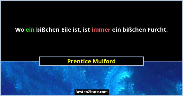 Wo ein bißchen Eile ist, ist immer ein bißchen Furcht.