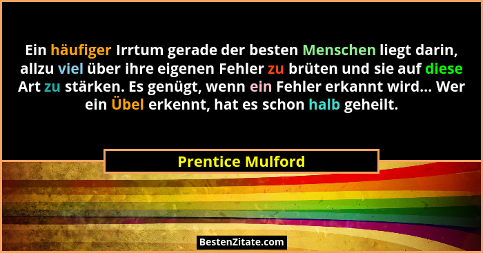 Ein häufiger Irrtum gerade der besten Menschen liegt darin, allzu viel über ihre eigenen Fehler zu brüten und sie auf diese Art zu stärken. Es genügt, wenn ein Fehler erkannt wird... Wer ein Übel erkennt, hat es schon halb geheilt.