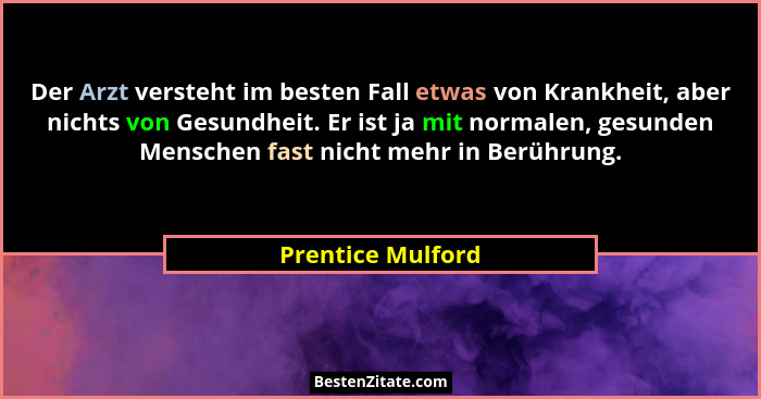 Der Arzt versteht im besten Fall etwas von Krankheit, aber nichts von Gesundheit. Er ist ja mit normalen, gesunden Menschen fast nicht mehr in Berührung.
