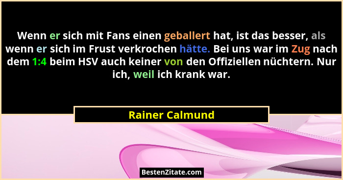 Wenn er sich mit Fans einen geballert hat, ist das besser, als wenn er sich im Frust verkrochen hätte. Bei uns war im Zug nach dem 1:4 beim HSV auch keiner von den Offiziellen nüchtern. Nur ich, weil ich krank war.