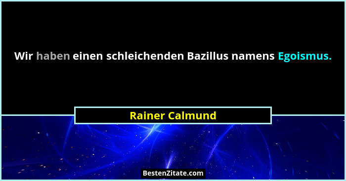 Wir haben einen schleichenden Bazillus namens Egoismus.