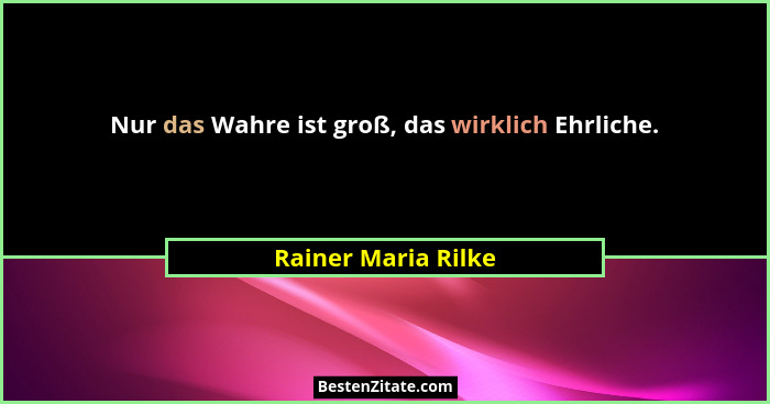 Nur das Wahre ist groß, das wirklich Ehrliche.