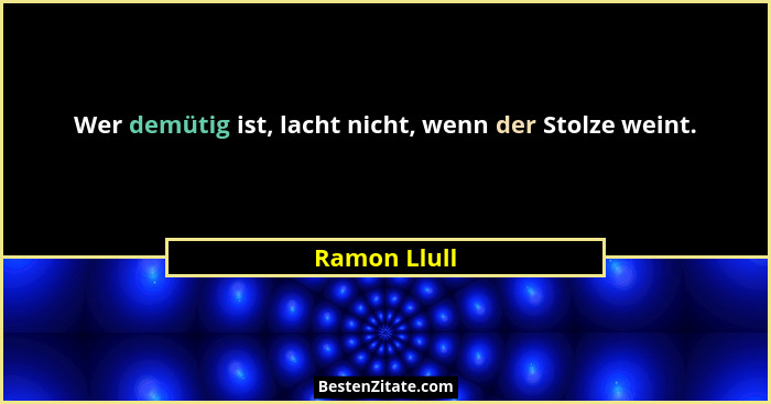 Wer demütig ist, lacht nicht, wenn der Stolze weint.