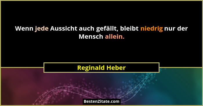 Wenn jede Aussicht auch gefällt, bleibt niedrig nur der Mensch allein.