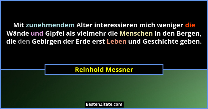 Mit zunehmendem Alter interessieren mich weniger die Wände und Gipfel als vielmehr die Menschen in den Bergen, die den Gebirgen der Erde erst Leben und Geschichte geben.