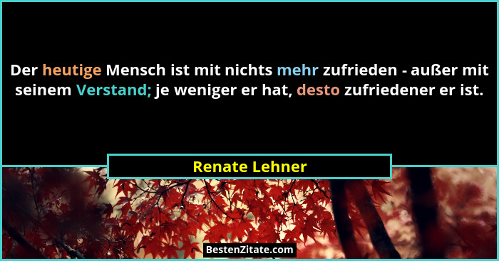 Der heutige Mensch ist mit nichts mehr zufrieden - außer mit seinem Verstand; je weniger er hat, desto zufriedener er ist.