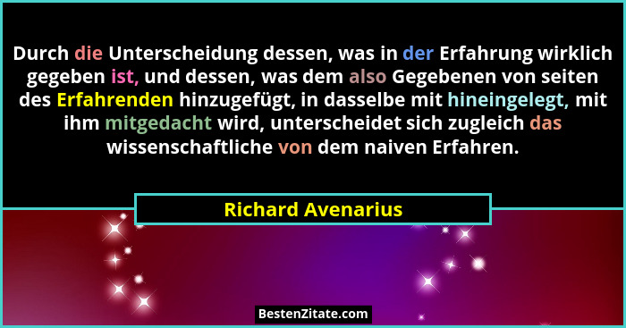 Durch die Unterscheidung dessen, was in der Erfahrung wirklich gegeben ist, und dessen, was dem also Gegebenen von seiten des Erfahrenden hinzugefügt, in dasselbe mit hineingelegt, mit ihm mitgedacht wird, unterscheidet sich zugleich das wissenschaftliche von dem naiven Erfahren.