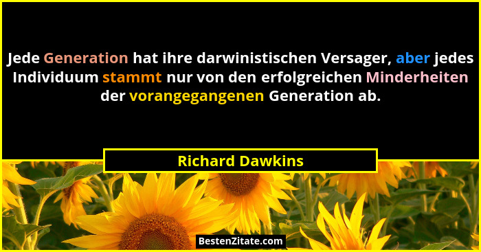 Jede Generation hat ihre darwinistischen Versager, aber jedes Individuum stammt nur von den erfolgreichen Minderheiten der vorangegangenen Generation ab.