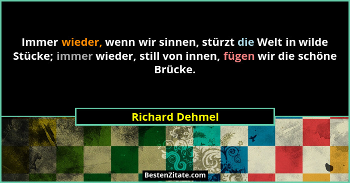 Immer wieder, wenn wir sinnen, stürzt die Welt in wilde Stücke; immer wieder, still von innen, fügen wir die schöne Brücke.