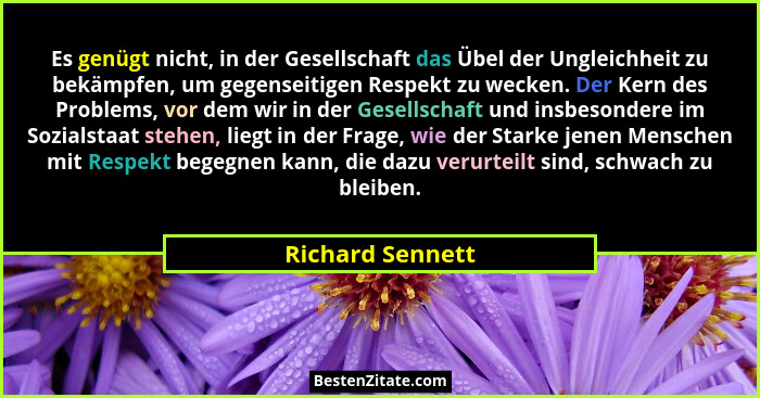 Es genügt nicht, in der Gesellschaft das Übel der Ungleichheit zu bekämpfen, um gegenseitigen Respekt zu wecken. Der Kern des Problems, vor dem wir in der Gesellschaft und insbesondere im Sozialstaat stehen, liegt in der Frage, wie der Starke jenen Menschen mit Respekt begegnen kann, die dazu verurteilt sind, schwach zu bleiben.