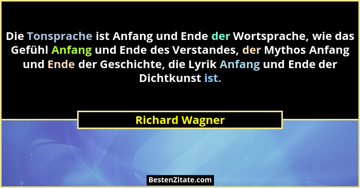 Die Tonsprache ist Anfang und Ende der Wortsprache, wie das Gefühl Anfang und Ende des Verstandes, der Mythos Anfang und Ende der Geschichte, die Lyrik Anfang und Ende der Dichtkunst ist.
