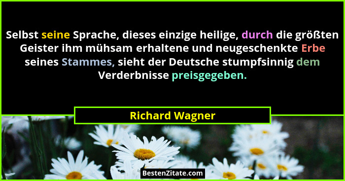 Selbst seine Sprache, dieses einzige heilige, durch die größten Geister ihm mühsam erhaltene und neugeschenkte Erbe seines Stammes, sieht der Deutsche stumpfsinnig dem Verderbnisse preisgegeben.
