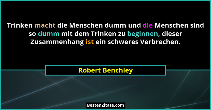 Trinken macht die Menschen dumm und die Menschen sind so dumm mit dem Trinken zu beginnen, dieser Zusammenhang ist ein schweres Verbrechen.