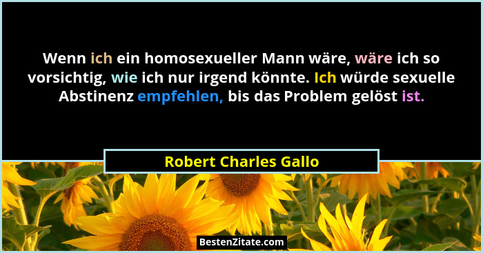 Wenn ich ein homosexueller Mann wäre, wäre ich so vorsichtig, wie ich nur irgend könnte. Ich würde sexuelle Abstinenz empfehlen, bis das Problem gelöst ist.