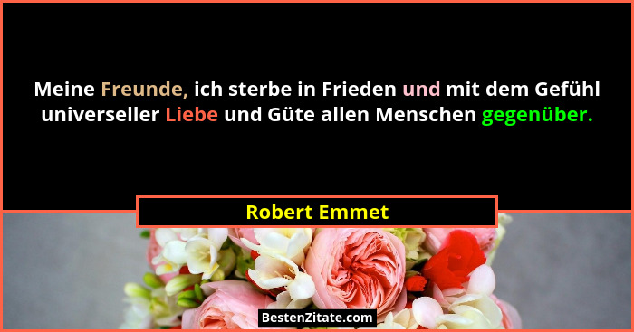 Meine Freunde, ich sterbe in Frieden und mit dem Gefühl universeller Liebe und Güte allen Menschen gegenüber.