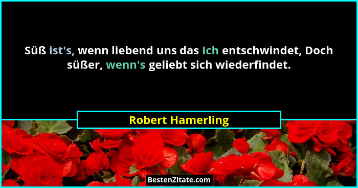 Süß ist's, wenn liebend uns das Ich entschwindet, Doch süßer, wenn's geliebt sich wiederfindet.