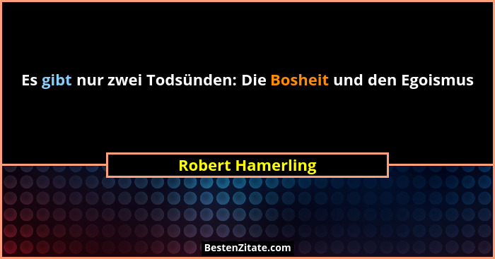 Es gibt nur zwei Todsünden: Die Bosheit und den Egoismus