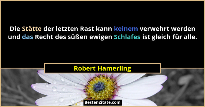 Die Stätte der letzten Rast kann keinem verwehrt werden und das Recht des süßen ewigen Schlafes ist gleich für alle.