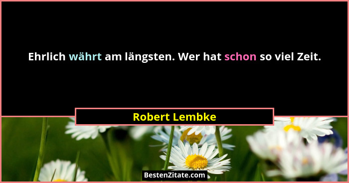 Ehrlich währt am längsten. Wer hat schon so viel Zeit.