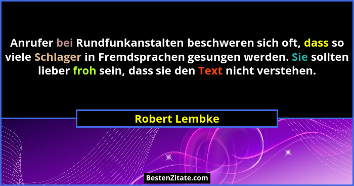 Anrufer bei Rundfunkanstalten beschweren sich oft, dass so viele Schlager in Fremdsprachen gesungen werden. Sie sollten lieber froh sein, dass sie den Text nicht verstehen.