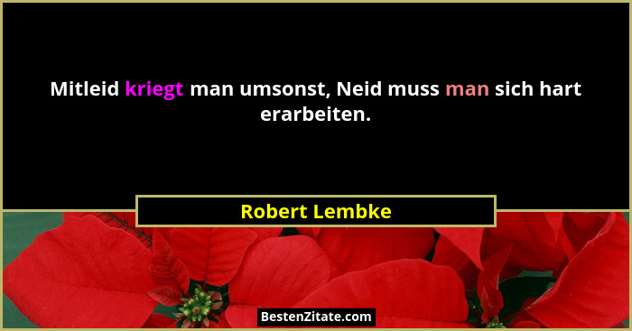 Mitleid kriegt man umsonst, Neid muss man sich hart erarbeiten.