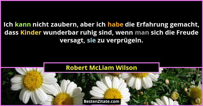 Ich kann nicht zaubern, aber ich habe die Erfahrung gemacht, dass Kinder wunderbar ruhig sind, wenn man sich die Freude versagt, sie zu verprügeln.