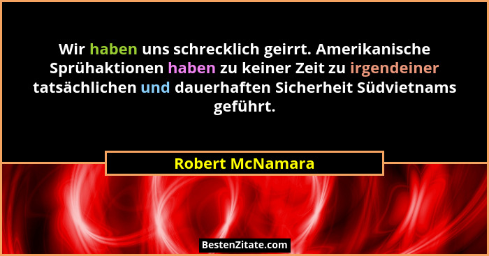 Wir haben uns schrecklich geirrt. Amerikanische Sprühaktionen haben zu keiner Zeit zu irgendeiner tatsächlichen und dauerhaften Sicherheit Südvietnams geführt.