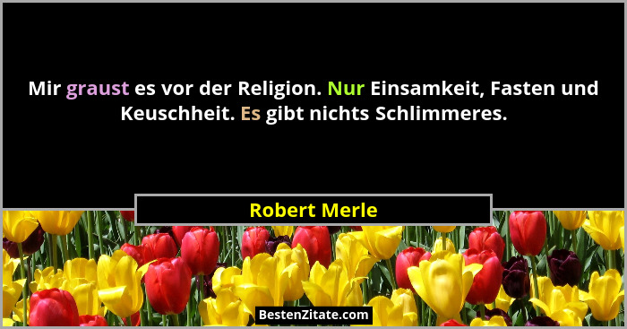 Mir graust es vor der Religion. Nur Einsamkeit, Fasten und Keuschheit. Es gibt nichts Schlimmeres.