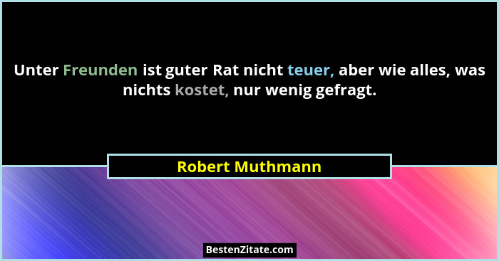 Unter Freunden ist guter Rat nicht teuer, aber wie alles, was nichts kostet, nur wenig gefragt.