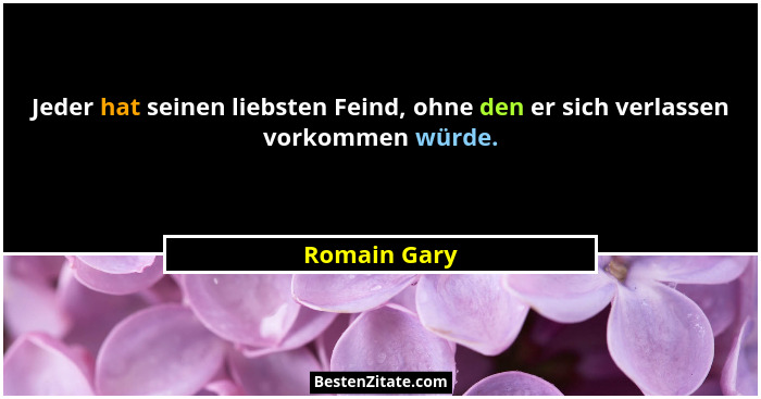 Jeder hat seinen liebsten Feind, ohne den er sich verlassen vorkommen würde.