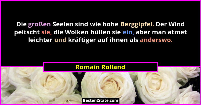 Die großen Seelen sind wie hohe Berggipfel. Der Wind peitscht sie, die Wolken hüllen sie ein, aber man atmet leichter und kräftiger auf ihnen als anderswo.