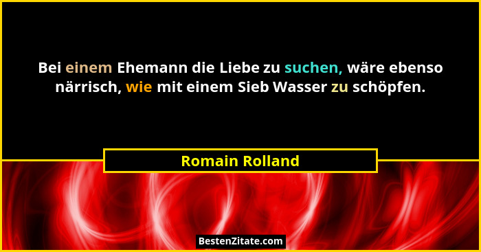 Bei einem Ehemann die Liebe zu suchen, wäre ebenso närrisch, wie mit einem Sieb Wasser zu schöpfen.