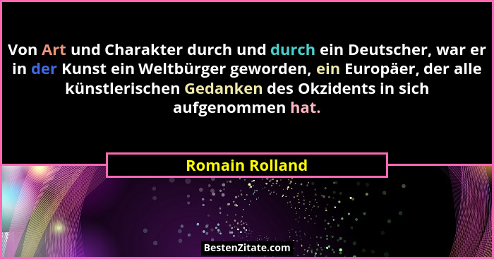 Von Art und Charakter durch und durch ein Deutscher, war er in der Kunst ein Weltbürger geworden, ein Europäer, der alle künstlerischen Gedanken des Okzidents in sich aufgenommen hat.