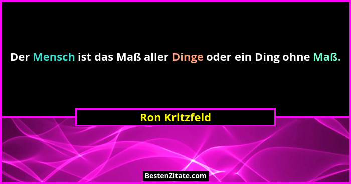 Der Mensch ist das Maß aller Dinge oder ein Ding ohne Maß.