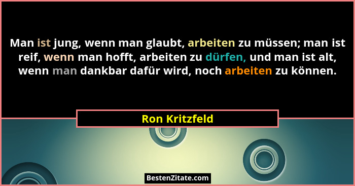 Man ist jung, wenn man glaubt, arbeiten zu müssen; man ist reif, wenn man hofft, arbeiten zu dürfen, und man ist alt, wenn man dankbar dafür wird, noch arbeiten zu können.
