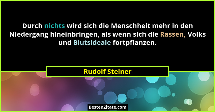 Durch nichts wird sich die Menschheit mehr in den Niedergang hineinbringen, als wenn sich die Rassen, Volks und Blutsideale fortpflanzen.