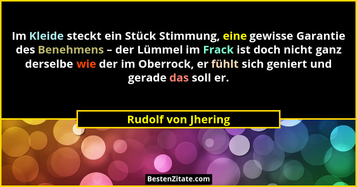 Im Kleide steckt ein Stück Stimmung, eine gewisse Garantie des Benehmens – der Lümmel im Frack ist doch nicht ganz derselbe wie der im Oberrock, er fühlt sich geniert und gerade das soll er.